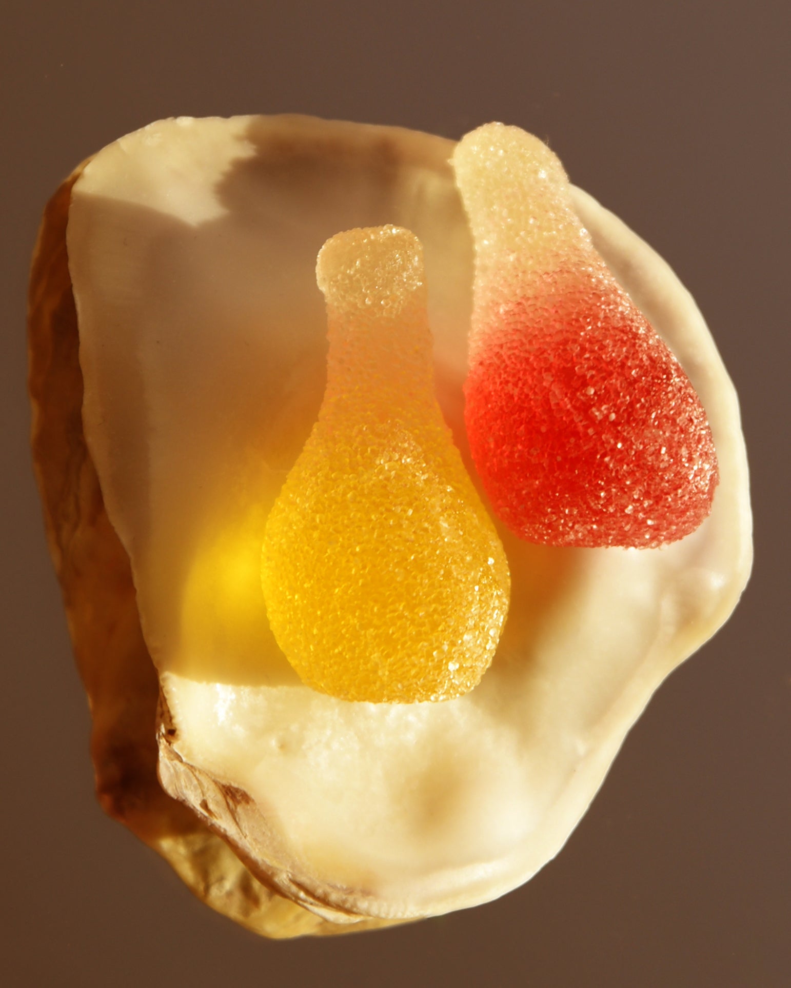 “A line is a dot that went for a walk.” —Paul Klee. All of these, are, in a way, dots that went for walks. This first drop is all about fruit-flavored candies that go a step further to sculpturally embody something else. Pik!-coated gummies look just like the Orangina soda bottle and taste like the fizzy drink with a bit of carbonation on the tongue, glossy gumdrops encase a gelly Yakult yogurt drink, jelly beans that look like miniature real grapes and have a lovely natural taste (with complete flavor profiles on the back of the packaging ranging between sweetness, richness, and acidity), Kit Kat bars are painted blue and capped with white “snow” to mimic the iconic landscape of Mount Fuji. And lastly, just for fun, a treat that isn’t “candy” at all… Japanese somen noodles made from real fruits and vegetables to create a rainbow array on your dinner plate or in your soup bowl.